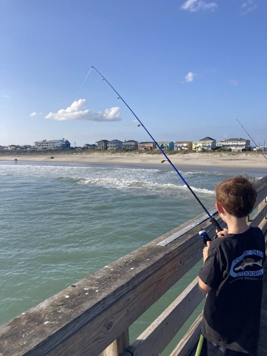 Most importantly, don’t forget to talk to your fellow anglers. Many of them have been coming to Carteret County for decades, for generations. Every conversation about a sea trout or a mackerel turns into a tale about family members who return yearly to cast their lines into the surf. These are love stories: love of the beach, love of the ocean, love of fishing. Like Mr. Hall, who met his wife on the pier when she offered him eight black drum she’d caught.
