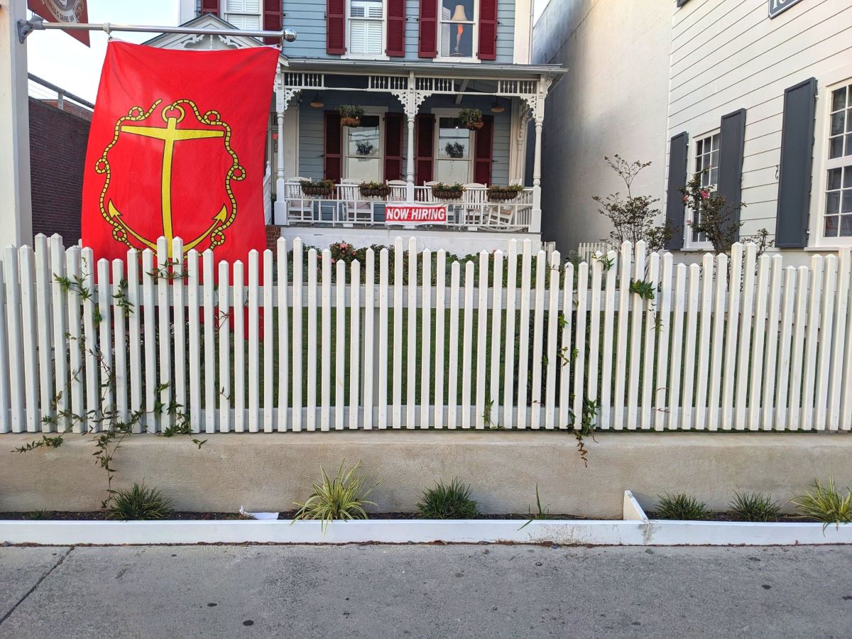 It’s Friday and the flag is flying at Beaufort’s Tapping the Admiral. It’s around back, behind Marmalade’s – up the gravel driveway. Akin to Krispy Kreme’s hot light, if the flag is raised, the bar is open. There’s an online social media flag of sorts for the digitally inclined.
